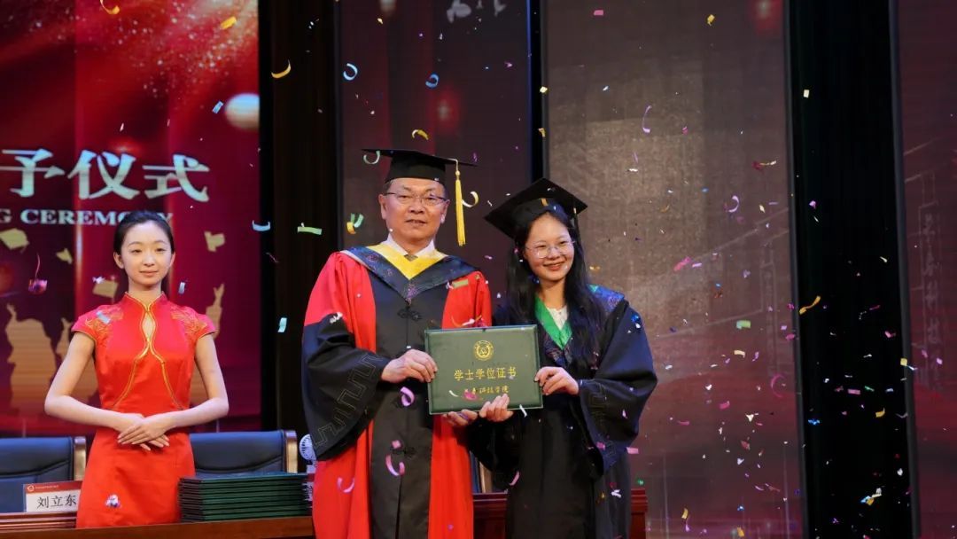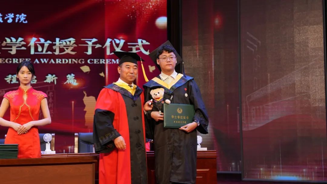 庄严的学位授予仪式将典礼推向高潮。校长偕同校领导及各学院院长,依次为视觉艺术学院、经济与管理学院、生命科学学院、智能制造学院、语言文化学院与新媒体学院、医药学院、国际教育交流学院的本科毕业生及留学生代表拨穗正冠、颁发学位证书和毕业证书。当毕业生们头戴学位帽、身着学位服接受师长拨穗的瞬间,现场洋溢着收获的喜悦与离别的眷恋。