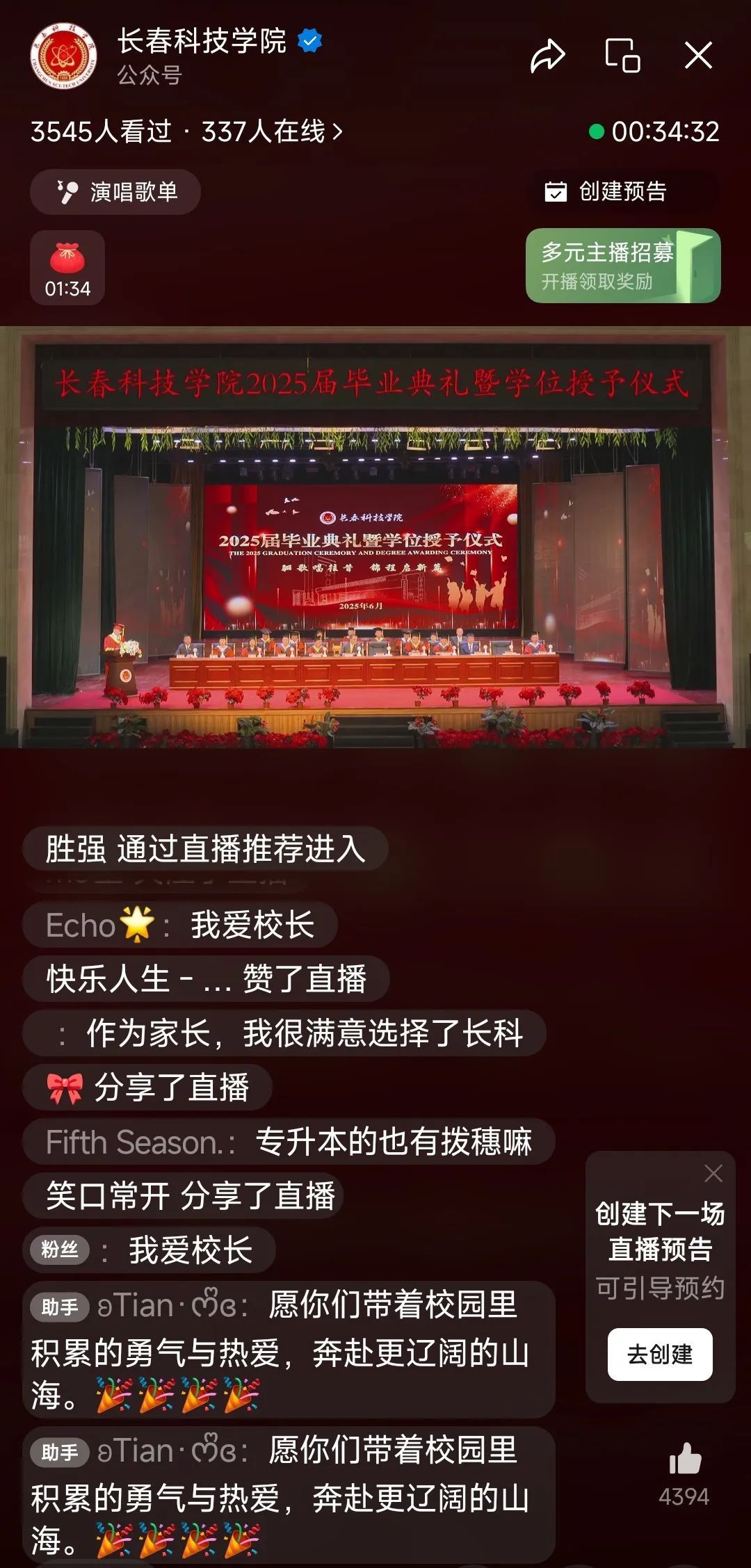 历千帆而不坠青云志,行万里仍长怀赤子心。本次典礼线上线下同步举行,是全体2025届毕业生扬帆启航的盛大序章。典礼落幕,毕业生们将满载母校的祝福与期望,踏上人生新征程。愿毕业学子走出半生,归来仍是长科少年。