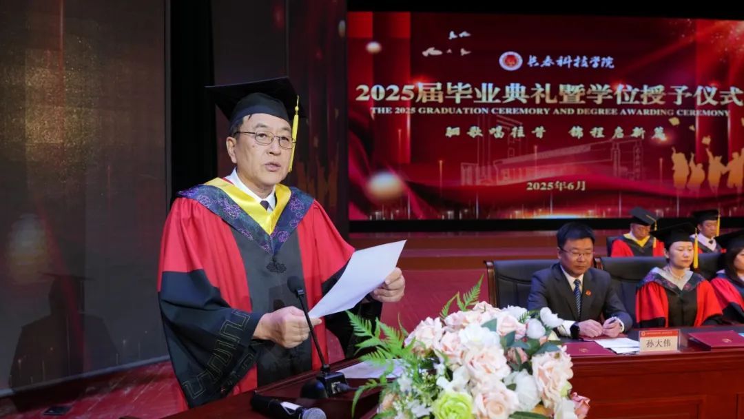 鲲翼垂天,云程初辟。6月23日上午,长春科技学院2025届毕业典礼暨学位授予仪式在东鳌学术论坛——国际会议中心举行。长春科技学院董事长张电达、校长栾立明、党委书记崔高嵩及其他校领导,校学位评定委员会委员,各职能部门、教学单位负责人,教师代表,家长代表以及4852名毕业学子齐聚一堂,以一场充满温情的告别礼,为青春镌刻注脚,为未来点燃星火。