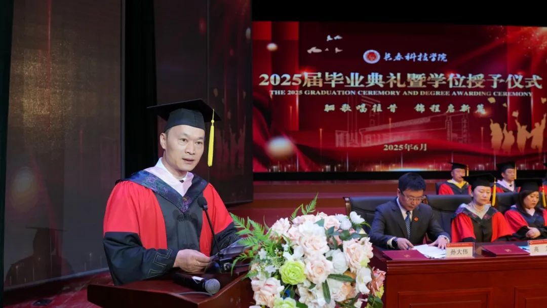 长春科技学院校长 栾立明 上台作题为“此去星辰大海,归来仍是长科少年”的讲话