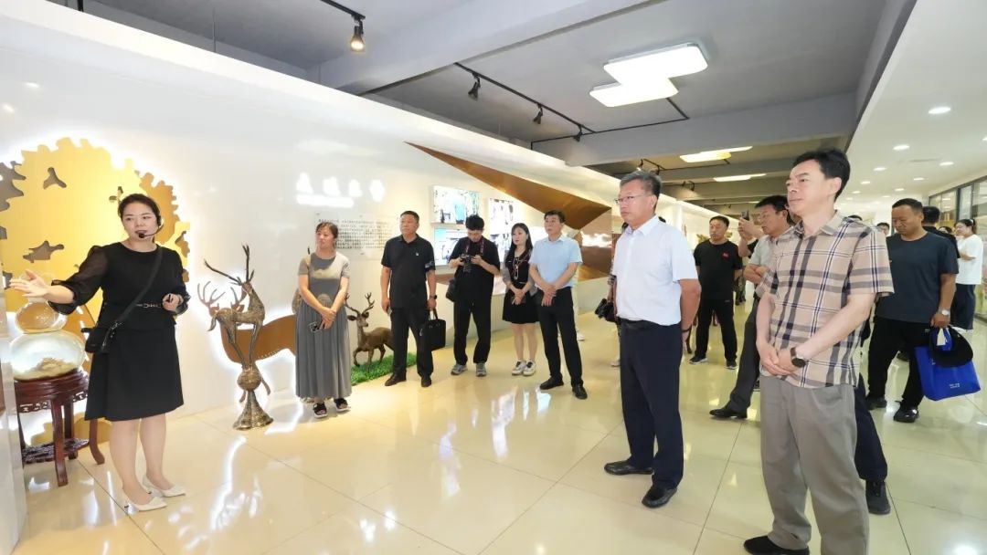 与会领导听工作人员介绍双阳鹿茸科技小院合作企业吉林东鳌鹿业集团建设情况