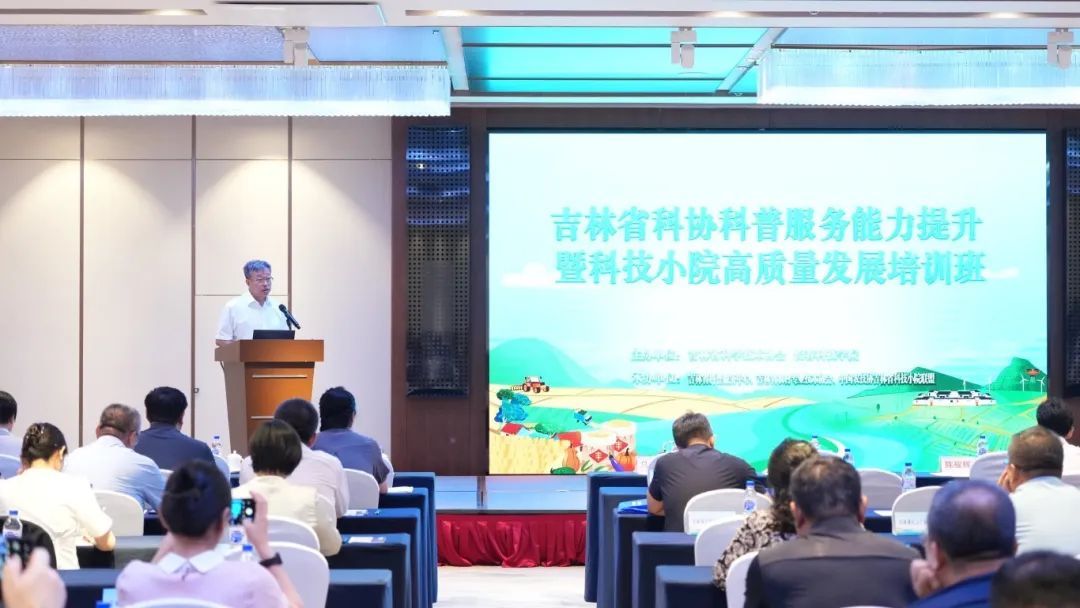 为深入贯彻落实中央一号文件和吉林省委1号文件精神,总结我省科技小院工作经验,推动科技小院向标准化、集群化、高质量方向发展,7月10日,由吉林省科学技术协会与长春科技学院联合主办的“2025年吉林省科协科普服务能力提升暨科技小院高质量发展培训班”在长春净月假日酒店成功举办。吉林省科协党组书记、副主席陈耀辉,长春科技学院校长栾立明、党委书记崔高嵩,吉林农业科技学院校长尹柏双,吉林农业大学副校长马红霞,吉林省农技协理事长高光,吉林省农技协监事长张胜利等领导出席会议。来自省、市、县三级科协系统、高校、科技小院依托单位及企业代表共140余人参加培训。活动由吉林省科协党组成员、副主席郝鹤主持。