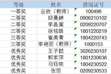 图书馆韩老师13089130626将在近期与获奖者联系,告知领奖具体事宜。