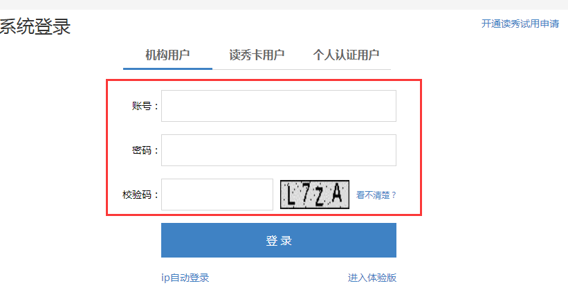 IP内用户,在地址栏内输入www.duxiu.com ,直接跳转读秀首页,IP外用户跳转登录页。