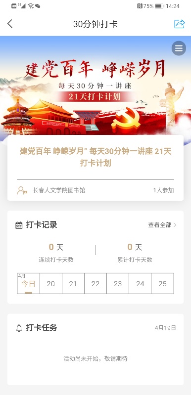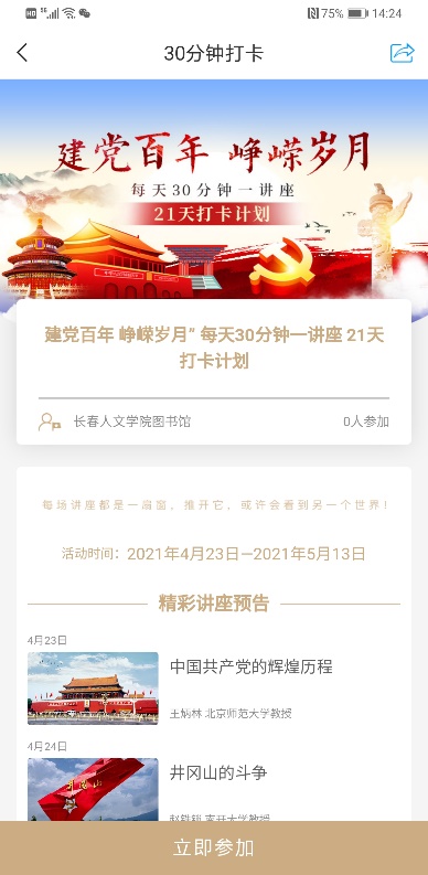 “建党百年,峥嵘岁月” 每天30分钟一讲座 21天打卡计划