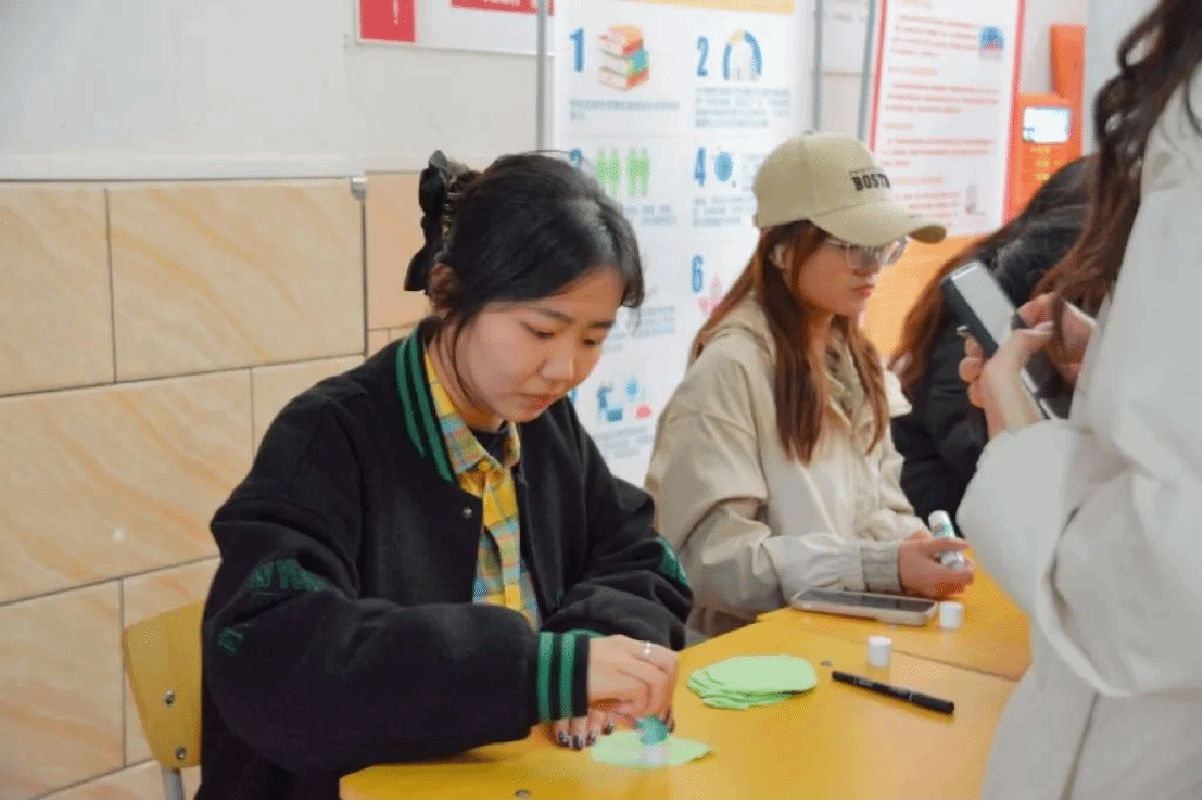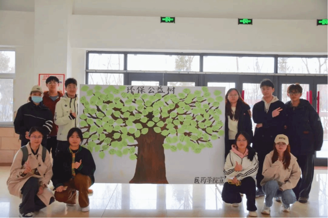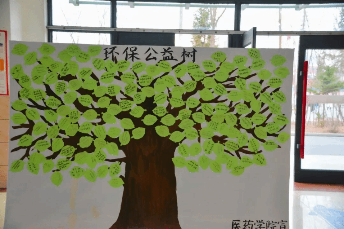 为进一步强化大学生的环保意识,弘扬志愿服务精神,推动环保教育在校园落地生根,4 月1 日下午,医药学院权益部在第四教学楼一楼大厅精心策划并成功举办了“志愿树”手工绘制活动。