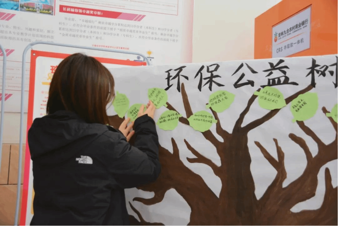 活动筹备期间,工作人员精心绘制大树树干与树枝板报,并备好手绘树叶。活动开始后,现场秩序井然,同学们热情高涨,纷纷手持自制树叶卡纸踊跃参与。同学们认真书写对环保及志愿服务的感悟,并将饱含心意的树叶贴在树枝上,一棵承载环保心愿的“志愿树”就此诞生啦!