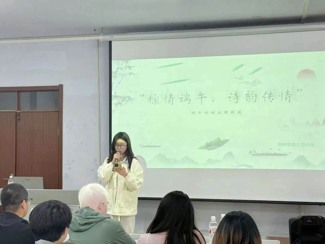 为让同学们深入挖掘端午节蕴含的文化精髓与爱国精神,感受中华传统文化的独特魅力,医药学院主持协会于5月25日在第二教学楼2204教室举办“粽情端午,诗韵传情”端午诗词主题朗诵活动。本次活动旨在为同学们搭建展示自我的平台,提升语言艺术素养与表达能力,推动端午文化在新时代的传承与创新。