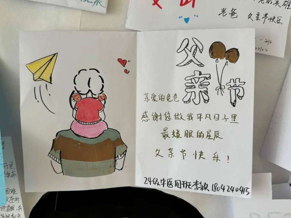 自活动开展以来,同学们积极响应、踊跃参与,纷纷上交制作精美的贺卡作品。一张张贺卡上,图画勾勒出成长路上父亲的默默陪伴,文字承载着未曾宣之于口的感激与爱意,每一份作品都凝聚着对父爱的独特诠释。