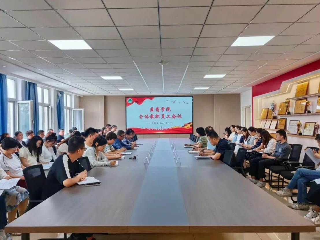 6月17日,医药学院在4413会议室召开期末教学工作部署会,全面安排期末考试与近期重点工作。学院领导班子及全体教职工参加,会议由院长闫立安主持。