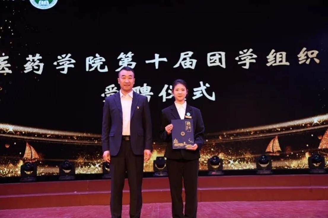 医药学院党总支副书记陈树森宣读《长春科技学院医药学院第十届学生干部和预备役教官聘任决定》。宣读完毕后,陈树森副书记亲自为长春科技学院第十届学生干部和预备役教官颁发聘书,每一份聘书都凝结着对同学们过往工作的认可,也寄托着对未来发展的殷切期许。