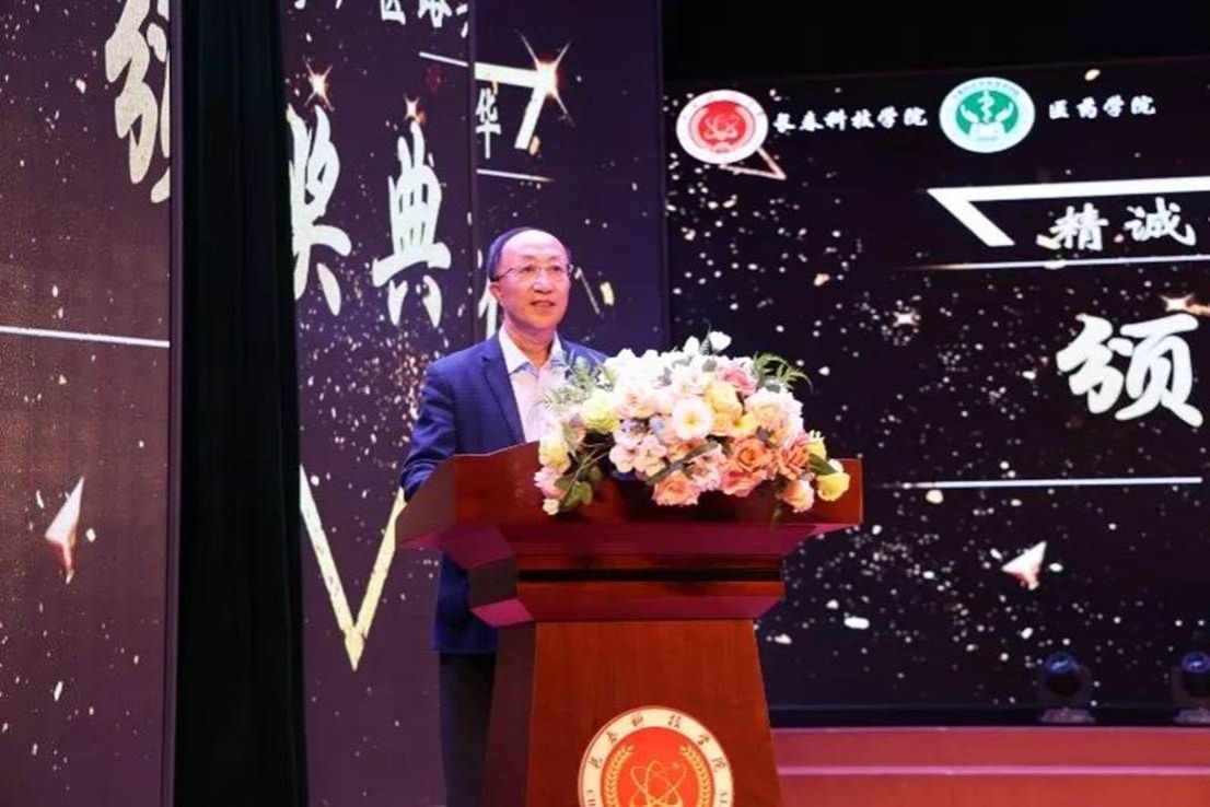 典礼伊始,全体师生肃立,激昂雄壮的国歌声响彻会场,为这场凝聚荣耀与希望的盛会拉开序幕。随后,医药学院院长闫立安宣读大会表彰决定,以铿锵有力的话语,为优秀学生点亮荣誉之光,会场气氛庄重而热烈。