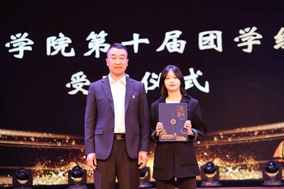 在表彰环节, 闫立安院长对同学们在第十九届科技文化艺术节中的表现给予高度肯定,并宣读先进集体与个人荣誉榜单。在热烈的期待中,优秀部门、优秀协会、优秀实践岗、优秀班级、优秀寝室、优秀连队等集体奖项,以及优秀工作者、优秀班干部、优秀寝室长、优秀教官、优秀标兵等个人荣誉逐一揭晓。这些熠熠生辉的奖项,不仅是对获奖者的肯定与褒奖,更凝聚着每一位同学奋斗的汗水与拼搏的荣光,是青春力量最生动的注脚。学院领导老师们为他们一一颁发证书。
