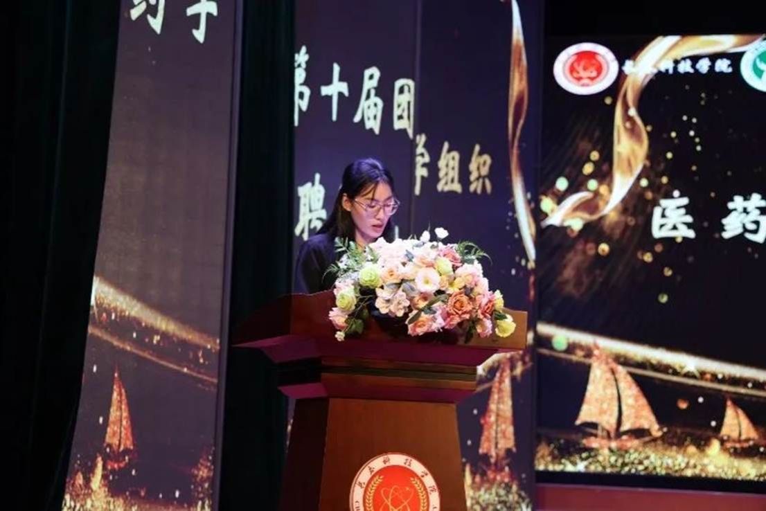 分团委书记团代表王超琦发表讲话,深情回顾在分团委的奋斗岁月,坦言那些为活动奔波的日夜、与团队成员并肩作战的时光,都是最珍贵的回忆。她强调,团学工作不仅是一份责任,更是一次自我提升的契机。她希望学弟学妹们以学为先,夯实专业基础;以责为重,牢记服务宗旨,在工作中互帮互助、勇于创新,用青春和汗水为医药学院团学事业注入新活力,创造更优异的成绩。