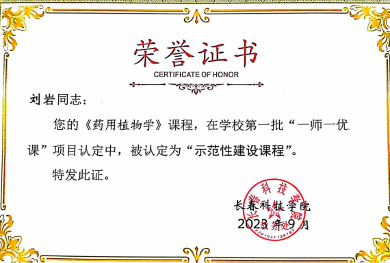 在科研领域,刘岩教授聚焦中药资源开发与利用,深耕不辍。主持完成教科研课题3项,参与完成10余项,获批实用新型专利5 项,发表 SCI 论文5篇,国家核心期刊论文 6篇,省级期刊论文 20 余篇,参编教材1部,注重科研成果的转化与应用,成果为中药产业提质增效提供了理论支撑。