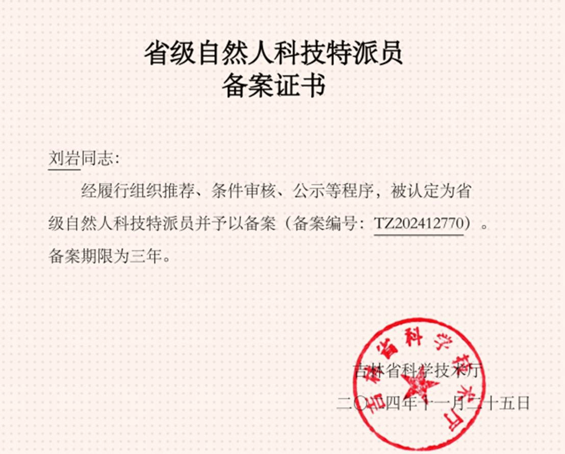 作为吉林省科技特派员、吉林省药学会中药天然药专业常务委员,刘岩教授积极将科研成果转化为服务地方经济的动力。他深入通化、白山等中药材主产区,为种植户提供技术指导,推广中药材规范化种植技术。