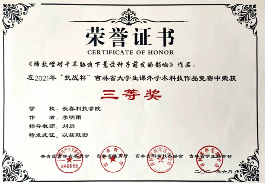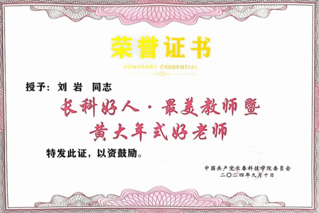 “老师的价值,在于让学生飞得更高。” 刘岩教授始终将学生成长放在心上,深耕创新创业教育,成为学生科研路上的 “领航员”。他指导学生完成 10 余项吉林省大学生创新创业训练计划项目,从选题、设计到实践,全程跟踪指导。在各类赛事中,他指导的学生团队屡创佳绩:在吉林省职业技能大赛,吉林省 “互联网 +” 大学生创新创业大赛、吉林省“挑战杯” 大学生课外学术科技作品竞赛、全国大学生生命科学竞赛中累计获奖 50 余次。