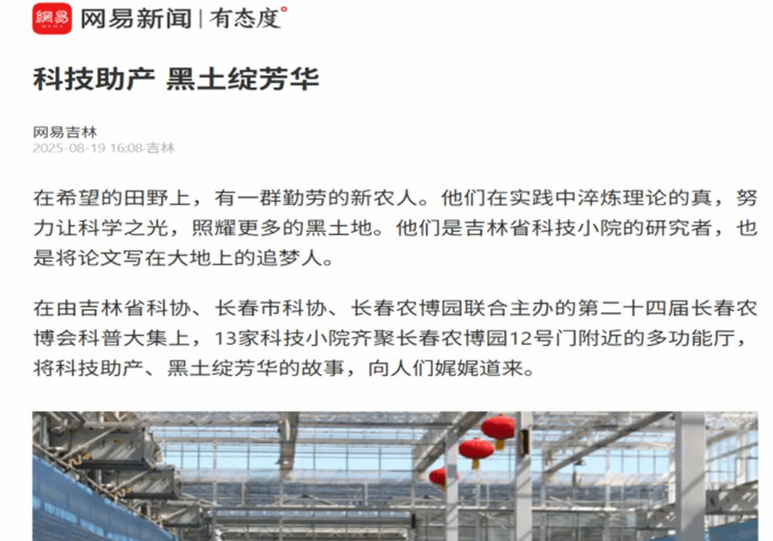 从央媒权威解读到地方媒体的视听呈现,从行业媒体的专业剖析到门户平台的全民互动,多维传播矩阵持续升温,让长春科技学院参与建设的灵芝科技小院实践从农博展台走向全网视野,更让“学生当主角、科技助振兴”的叙事,成为这个夏天最鲜活的“助农注脚”。