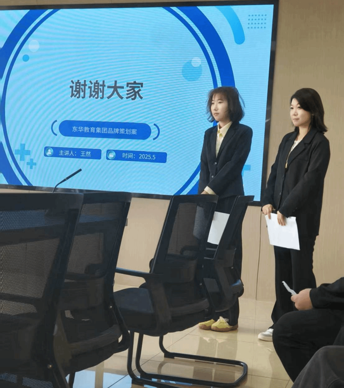 在项目推进过程中,团队紧紧围绕东华教育品牌策划方案,以职业教育差异化定位、智慧教育平台搭建及智能化医院协同为核心,深入研讨论证品牌核心价值与传播体系,系统优化“线上线下融合、国内国际联动”的品牌推广路径,通过多轮模拟答辩与策略推演,持续提升方案的专业性、落地性和创新性,充分体现了团队成员严谨务实、协同共进的专业素养。团队成员反复打磨职业教育差异化课程体系、AI教学系统“东华智脑”的应用场景及国际化品牌传播策略,体现了精益求精的工匠精神和协同攻坚的团队意识。