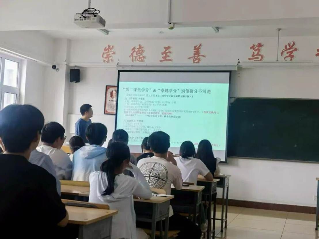 随后,2023级眼视光学专业学长进行经验分享,向新生们分享第二课堂相关情况。他细致介绍了第二课堂涵盖的创新创业及学科竞赛、社会实践与志愿服务、思想成长、工作履历、文体活动以及技能特长这六项核心内容,从各板块的具体范畴到参与意义,一一为新生讲解,希望同学们借此能更清晰明确自身在专业学习之外的成长路径,积极参与相关活动,在丰富大学生活的同时,全方位提升综合素养。