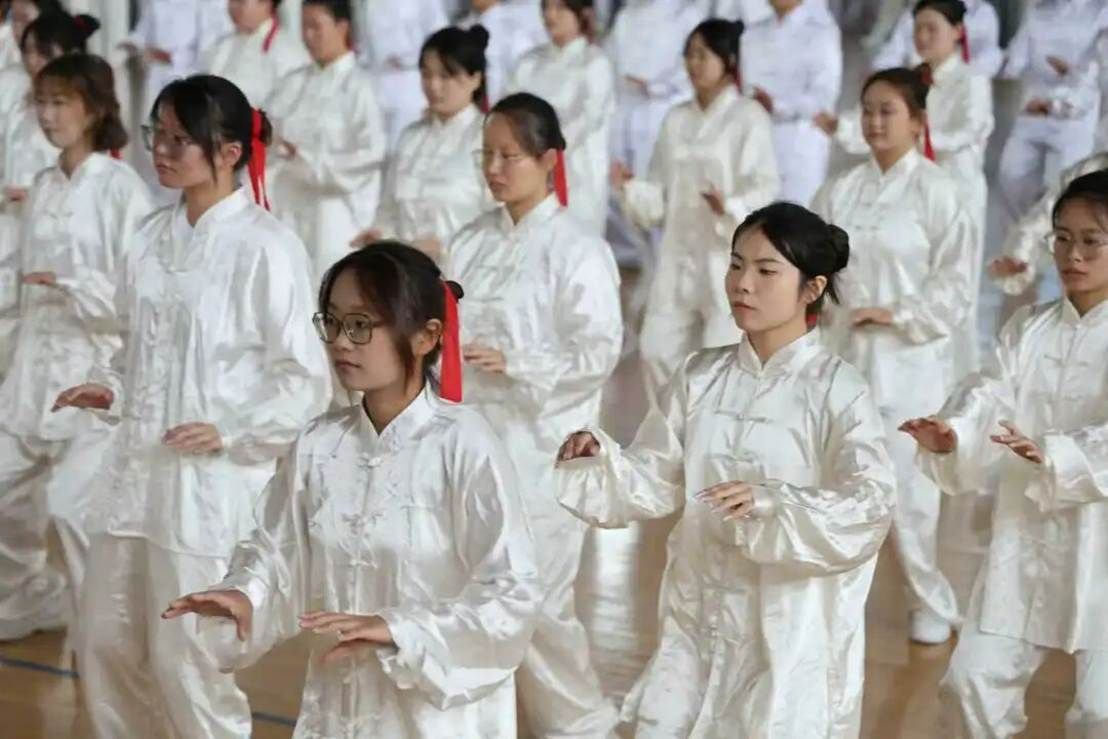 比赛临近结束,选手们以“收势”收尾。随着双手慢慢垂下,悠长的呼吸渐渐平稳,可他们的神情依旧沉浸在太极的意境里。这一刻,操场上的喧闹仿佛都被阻隔开来,只有太极文化中“天人合一”的静谧,在每个人的心间萦绕。
