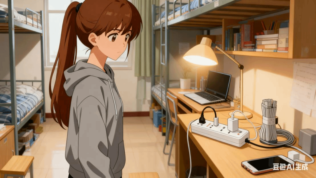 插电前先检查:插充电器、台灯前,看插座有没有破损,插插头时若冒火花,立刻停手找宿管;