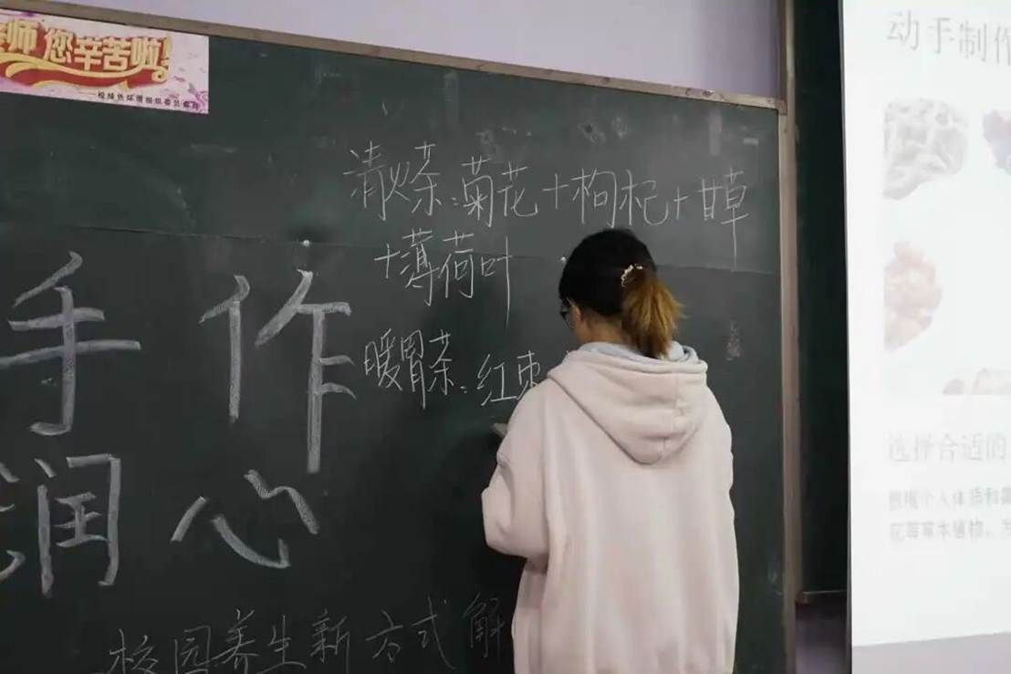 活动现场,讲解人员精准结合金秋气候特点与社员学业压力下的健康困扰(如上火、疲劳),细致拆解两款适配校园场景的养生茶方,同步讲解各味药材的性味与对应功效——清火茶(菊花+枸杞+甘草,主打清热明目)、暖胃茶(红枣+桂圆+姜片,侧重补气血驱寒),让理论知识紧密贴合社员实际需求,易懂又实用。