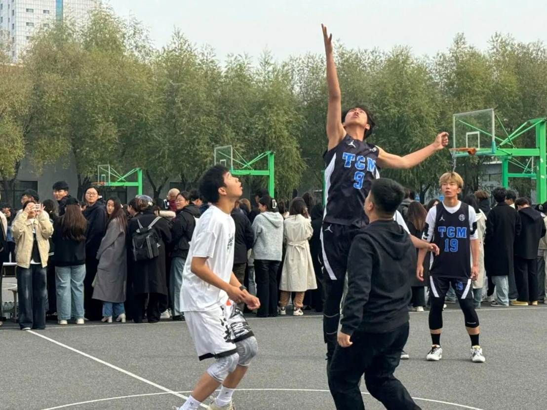 赛场边的氛围比首战更为热烈,各班的助威队伍早早占据了最佳观赛位置。“加油!防守!”“再来一个!” 的呐喊声此起彼伏,震得人耳膜微微发麻。每当球员们打出漂亮的配合、完成惊险的抢断,或是在关键时刻投进压哨球,观众席便会瞬间沸腾 —— 同学们纷纷跳起来,有的激动地互相击掌,有的高举手机记录下这精彩瞬间,为球员们的出色表现点头喝彩。偶尔出现失误时,场边也没有指责的声音,取而代之的是 “没关系,再来一次!” 的鼓励,这份包容与热情,如同温暖的浪潮,将整个赛场紧紧包裹。