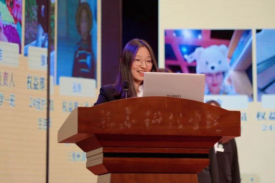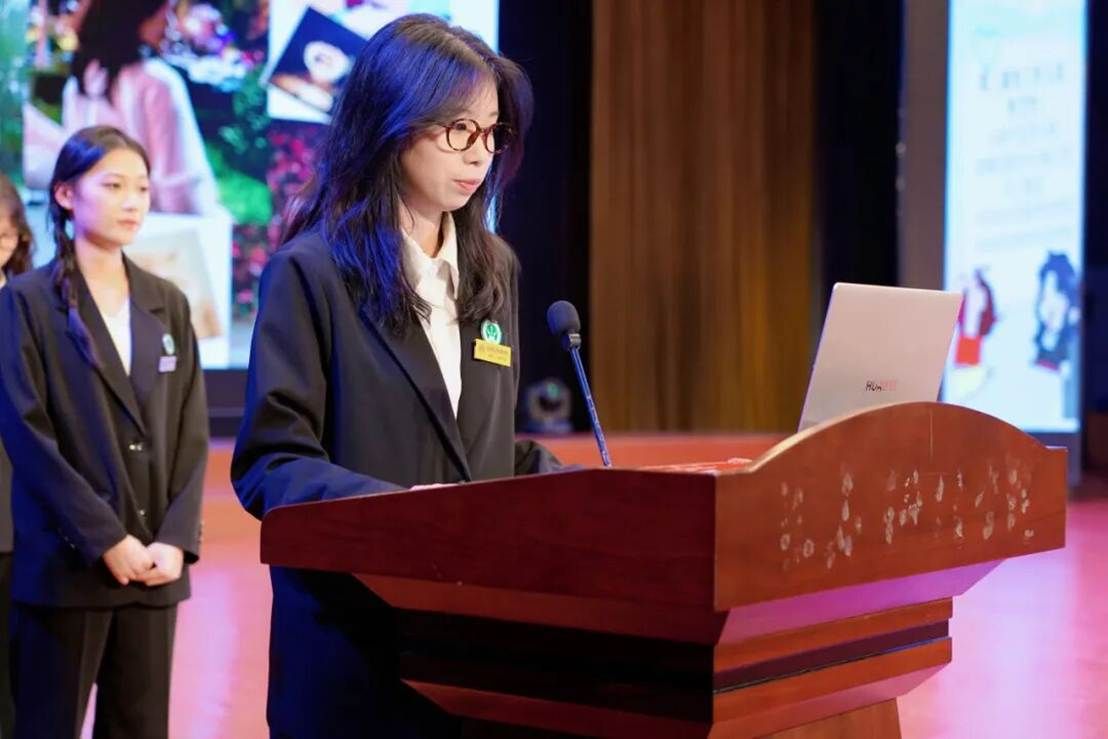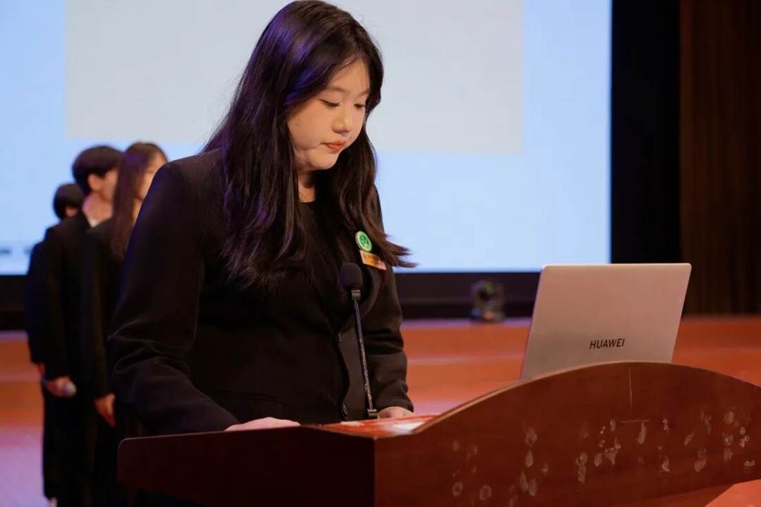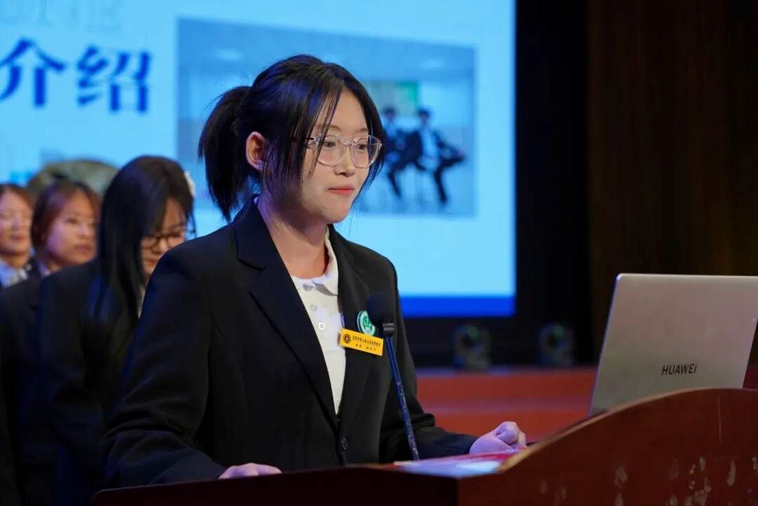 部门介绍环节尾声,学生会主席团成员刘瀛瀛上台作总结发言。她鼓励在场同学,希望大家通过此前的介绍能切实了解团学组织的架构与各部门工作,后续结合自身兴趣和特长慎重选择适配的部门;同时提到,团学组织是服务校园、连接师生的重要纽带,更是同学们锤炼能力、积累经验的实践平台,期待大家能在这里找准方向、发挥所长,与团学组织共同成长进步,为学院校园文化建设注入更多青春活力。