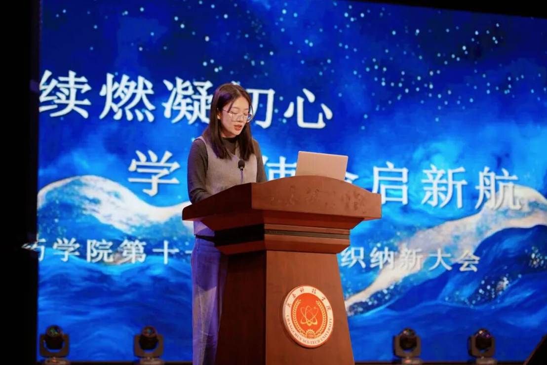 随后,分团委书记王琳倩上台讲话。她强调团学组织是学生成长的重要实践阵地,既能锻炼统筹协调、沟通表达等能力,也能让新生在服务校园的过程中快速融入集体,鼓励大家结合自身兴趣与特长,积极参与纳新,在团学工作中实现自我提升。