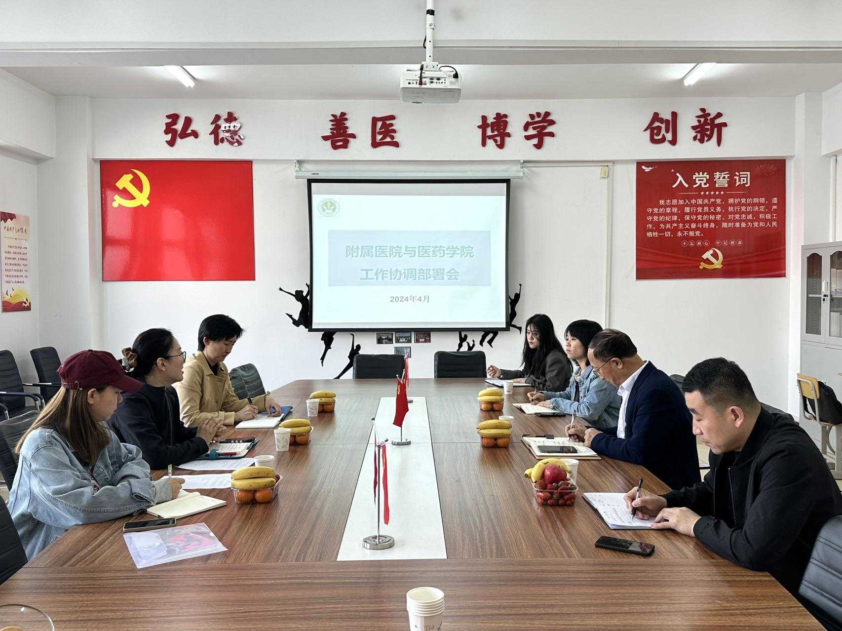 会议伊始,闫立安院长代表医药学院对学校附属医院领导的到来表示热烈欢迎,并表示附属医院正在建设发展时期,双方应加强合作协同、资源共享,促进共同发展。通过分院和附属医院联合教学、研学带教、社团活动等多种方式来实现学院和附属医院的深度联动、同质建设、补位发展,是双方现阶段的重点工作之一。