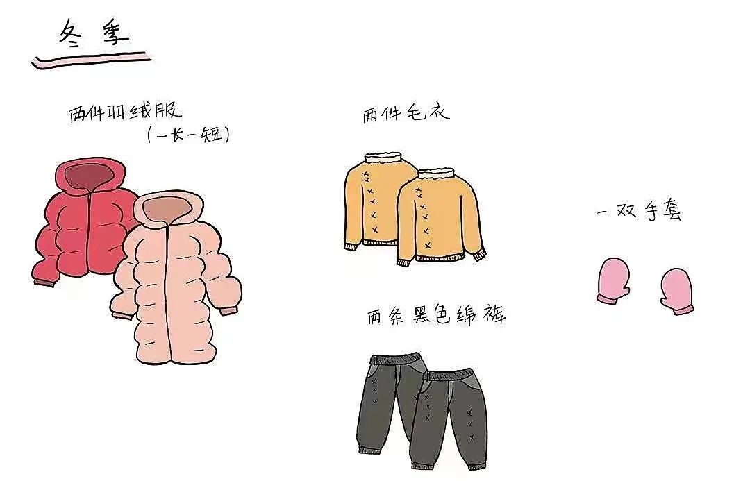 另外棉袄类的冬装,可以备一件到两件,况且新冠疫情是不确定因素,可以避免没有适应季节的衣物穿。