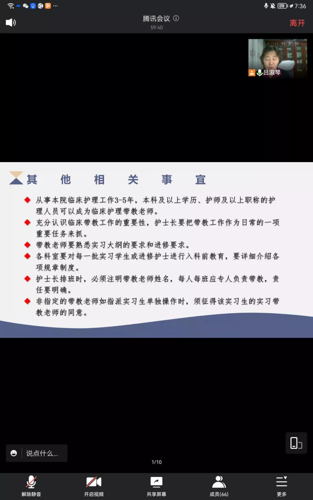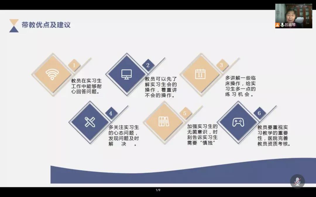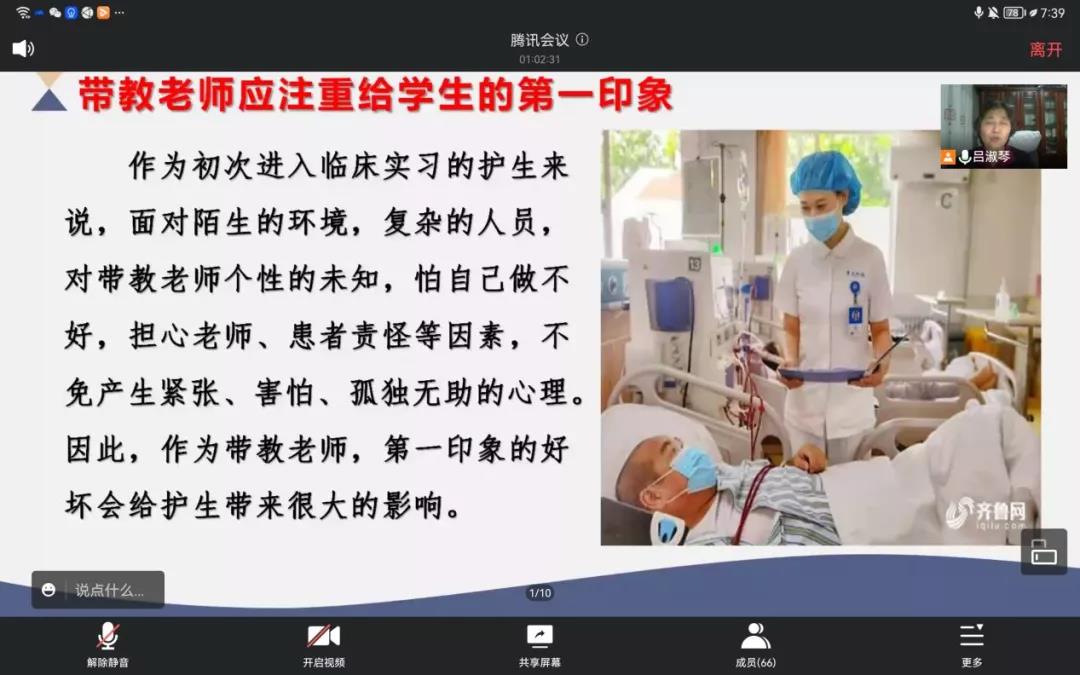 吕淑琴教授从学校基本情况,实习工作任务,带教工作思考及贵院带教经验和建议三个方面进行。