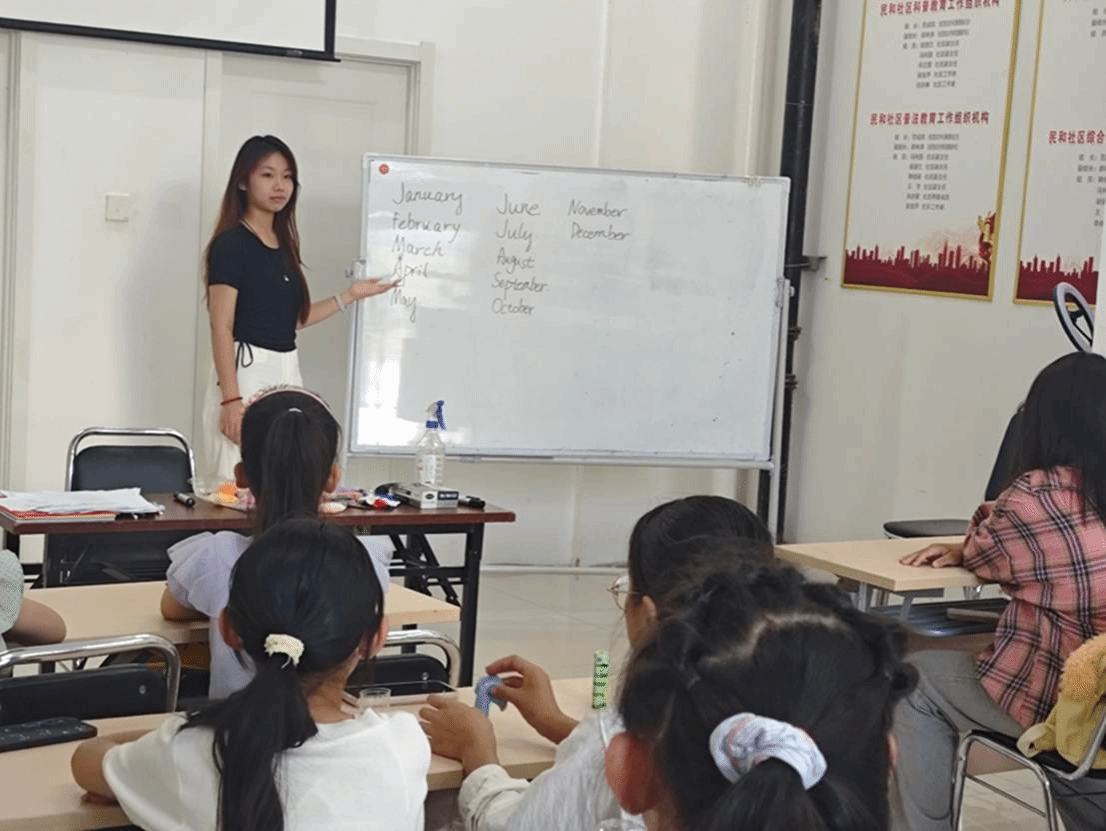 离营那天,孩子们把亲手做的小花瓶、画满海洋生物的画册和写着月份单词的卡片塞给我。握着这些带着温度的礼物,我知道这段时光早已刻进记忆。它让我明白,教育是用耐心浇灌信任,用创意点燃热情,用陪伴传递温暖。一个月的实践很短,但那些握过的小手、听过的笑声、收获的成长,早已成为我青春里最珍贵的宝藏,让我更懂得责任的意义,也更坚定了用爱心温暖他人的初心。