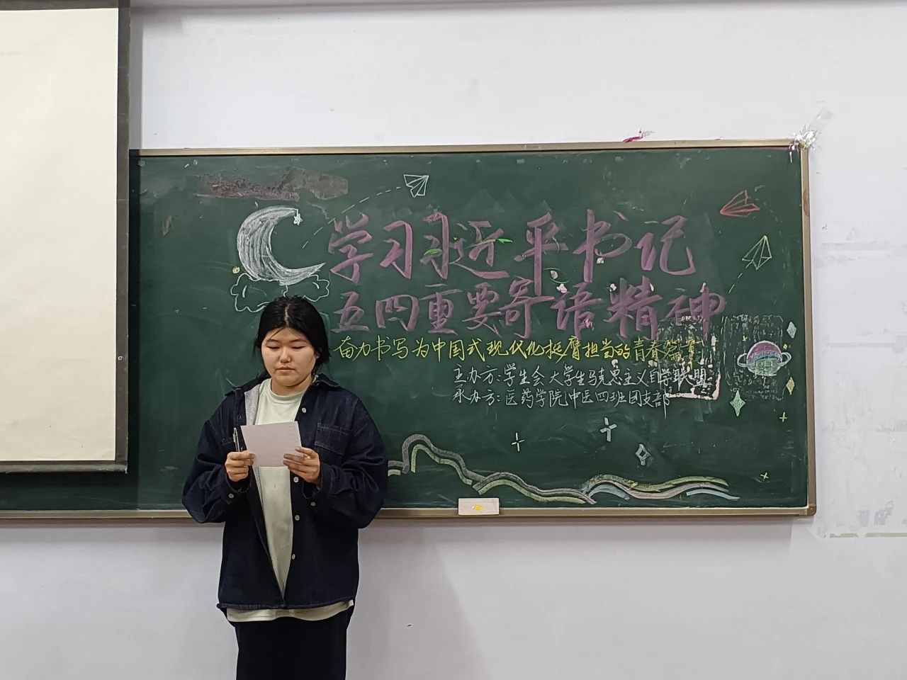 为学习贯彻习近平总书记关于青年工作的重要思想,坚持党管青年工作原则,加强党对青年工作的领导,关心青年一代思想成长,开展团的基本知识教育,引导团员和青年深刻领悟五四精神,以担当作为淬炼初心使命,以奋斗之姿续写时代华章,为此医药学院于5月26日特开展“奋力书写为中国式现代化挺膺担当的青春篇章”主题团会。激励同学们要继承和发扬五四精神,坚定不移听党话、跟党走,争做有理想、敢担当、能吃苦、肯奋斗的新时代好青年,在推进强国建设、民族复兴伟业中展现青春作为、彰显青春风采、贡献青春力量,奋力书写为中国式现代化挺膺担当的青春篇章。