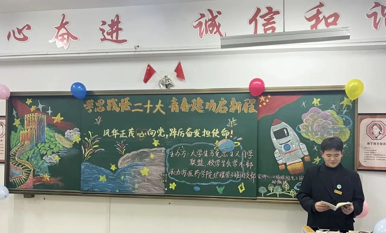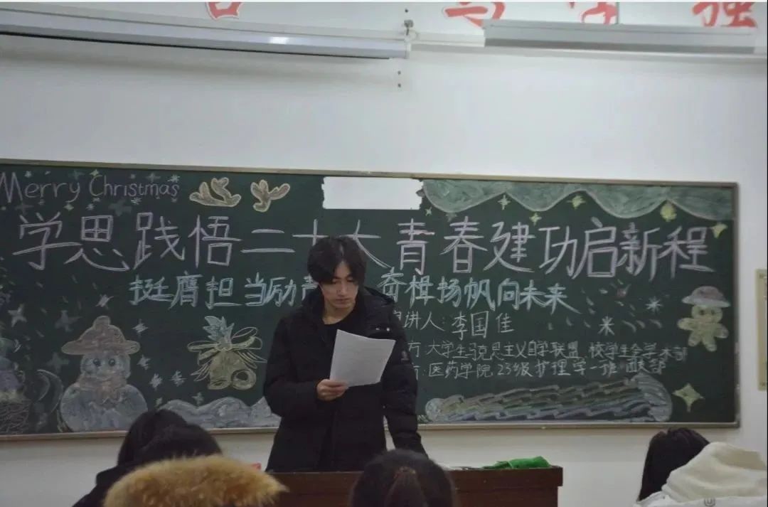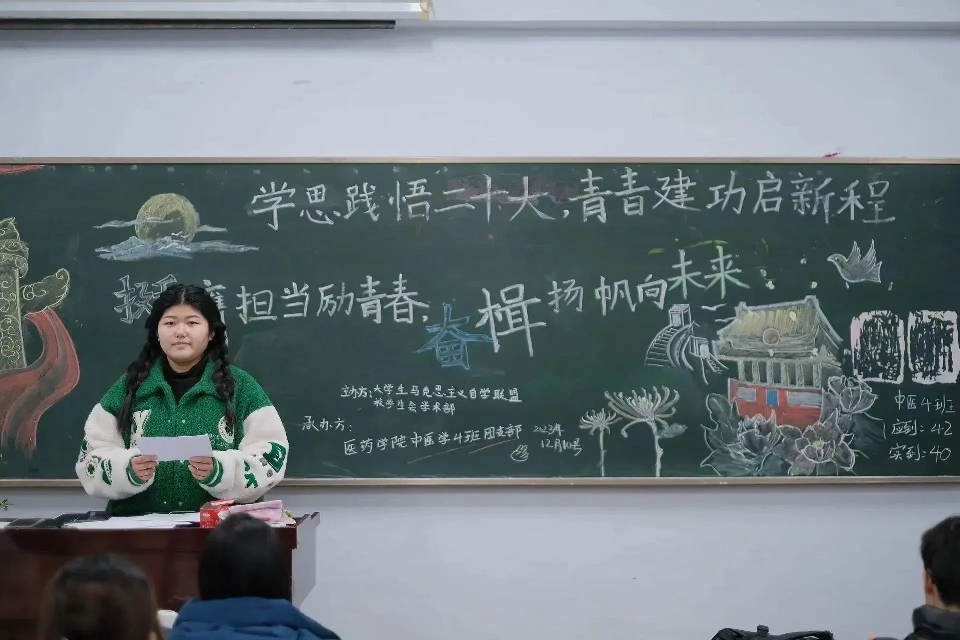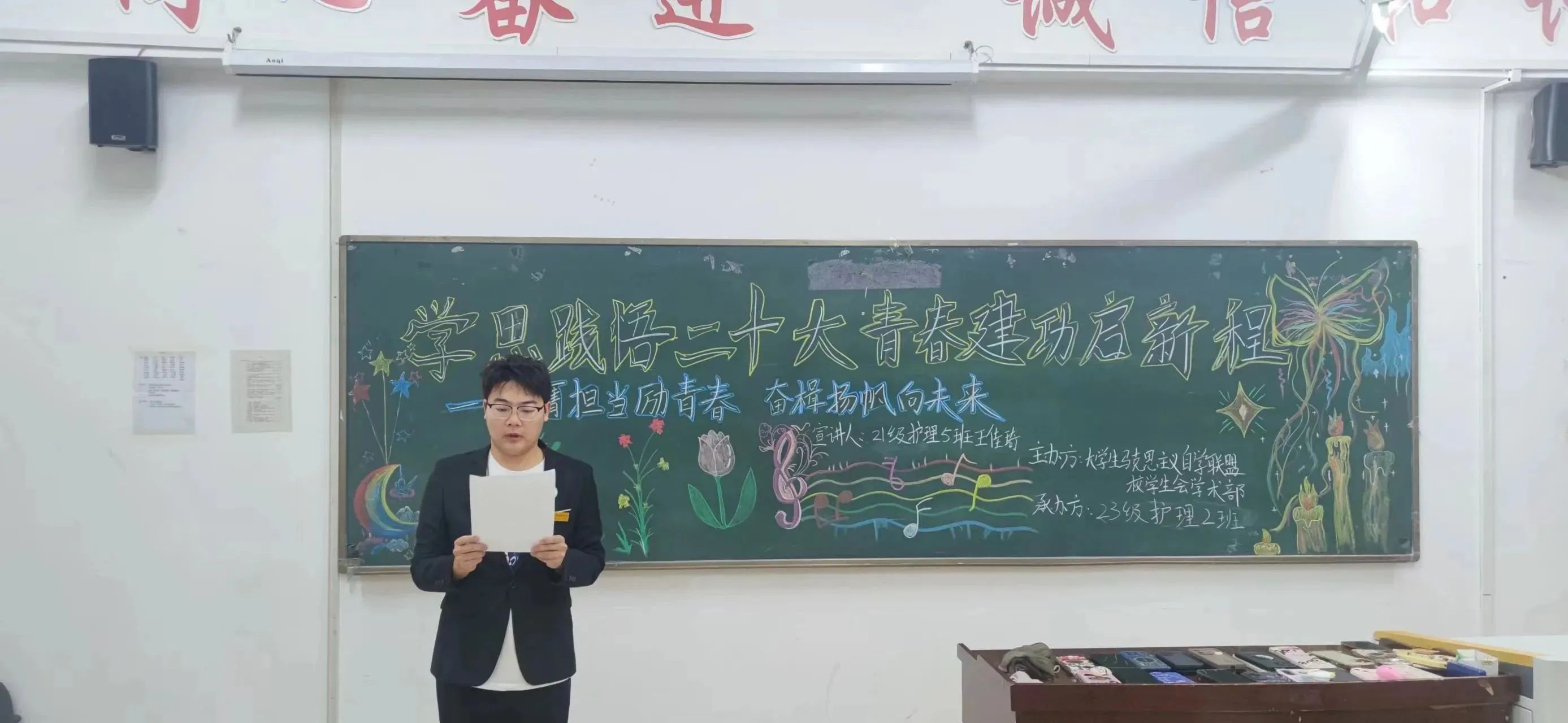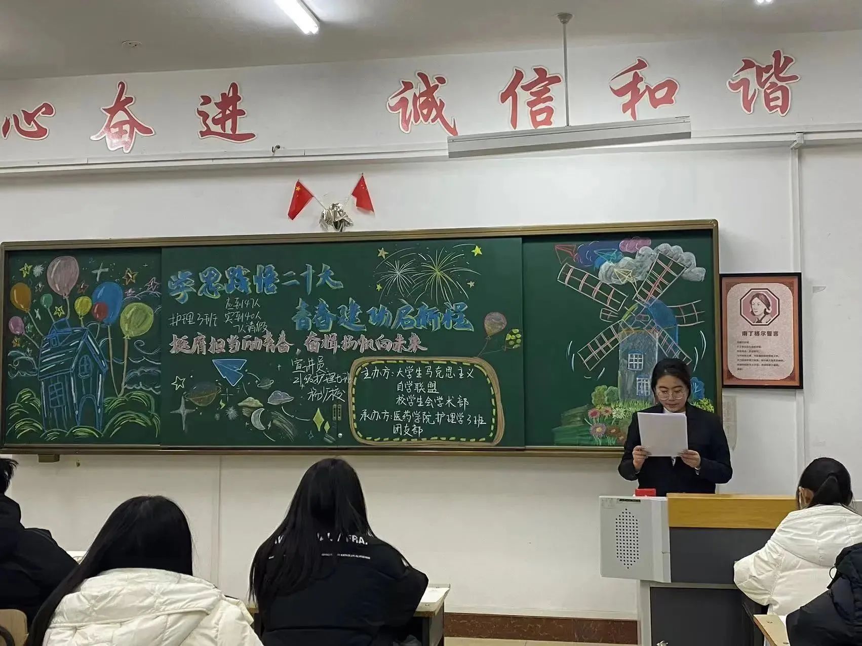 为深入学习贯彻党的二十大精神,医药学院于2023年12月10日18点30分以班级为单位开展“挺膺担当励青春,奋楫扬帆向未来”主题团会。我院2023级全体学生参加。本次团会的三位宣讲人分别为21级护理学7班杨少校、21级眼视光学2班孙傲博和21级护理学5班王佳琦。