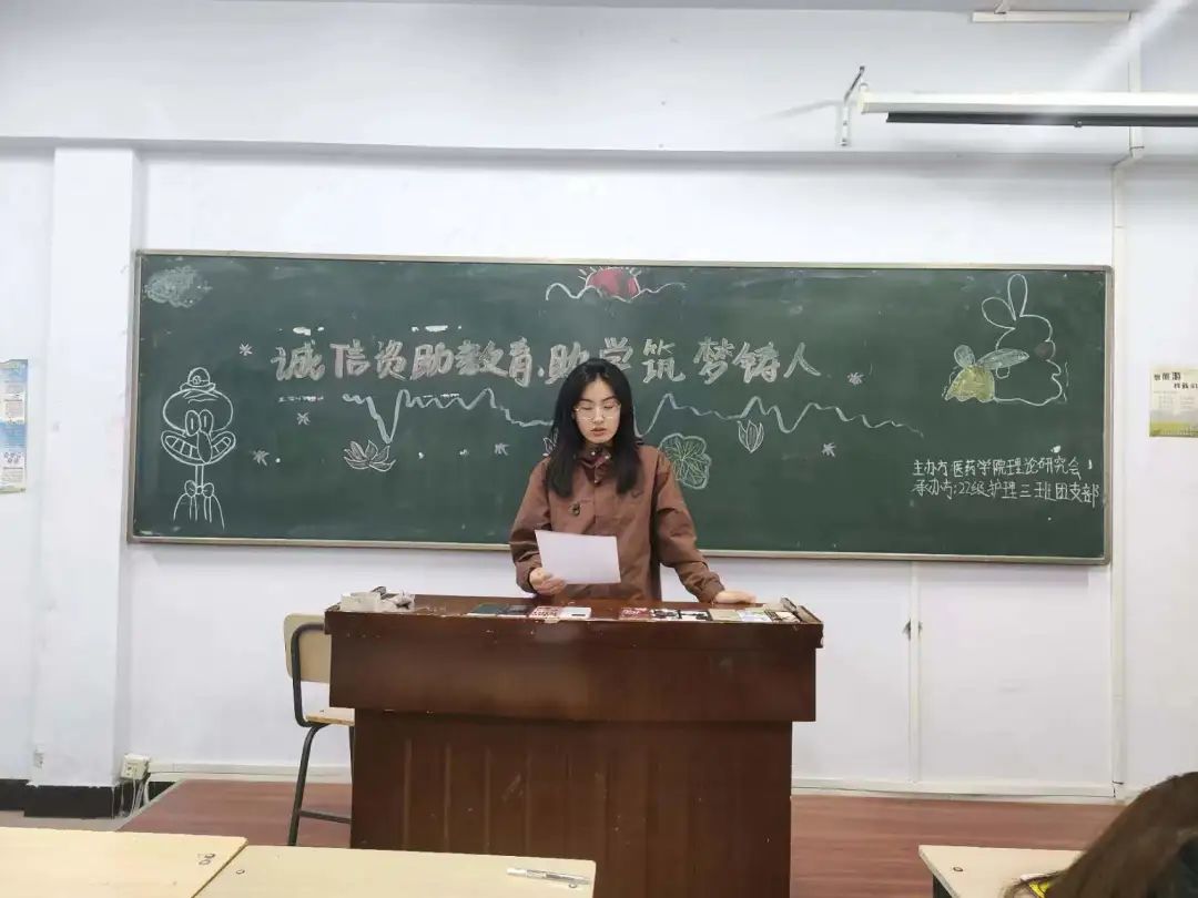 为加强对学生的诚信教育、感恩教育、励志教育,引导学生树立正确的征信意识、金融意识、风险意识、法律意识,提高同学们的思想道德素质、诚信感恩素养和社会责任感,促进国家资助工作的顺利开展和社会良好风气的形成,2023年6月11日,医药学院理论研究会特组织开展资助诚信教育主题团会。22级全体学生积极参与了本次主题团会。