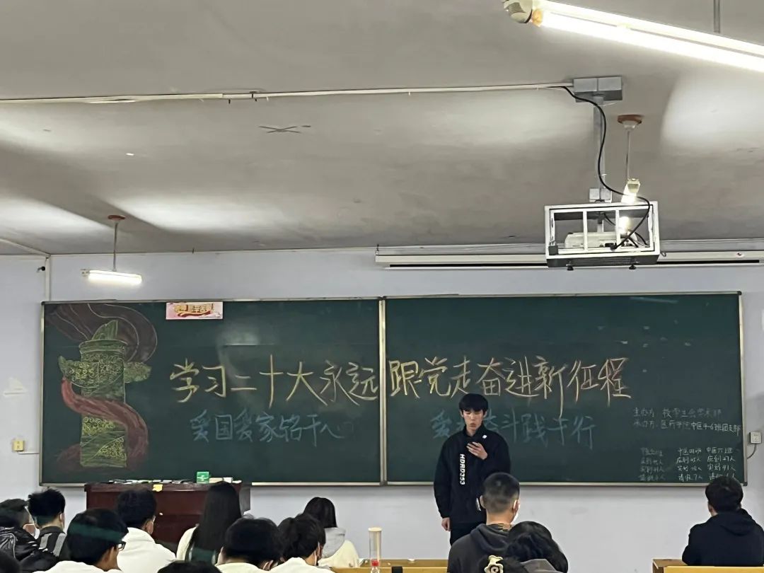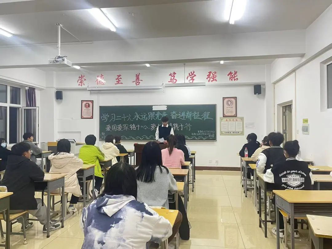 团会开始,各班主持人介绍此次团会背景,引导同学们认真学习党的二十大精神。