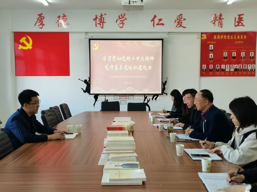 林佳彬书记在听取汇报后强调,学院要用党的二十大精神统一思想和行动,提高政治站位、强化责任担当。一要认真学习贯彻党的二十大精神,在“学”中争先,在“做”中落实,学深悟透做实,入脑入心。二要加强师资队伍建设,凝聚青年力量,把专业课程内容与思政元素的有机结合。三要注重人才培养能力和教育教学质量,执业医师通过率,护士执业资格考试通过率等体现着学院的办学水平和毕业生的综合素质,要加强全体教师对学生培养质量的责任心和对发展医学教育事业的责任感。四要用好外力,激发内力。搭建良好的实习平台,提升医学专业学生岗位胜任力和实践能力。五要积极做好疫情防控,落实好学校中心工作,以党的二十大精神为指引,踔厉奋发、勇毅前行。