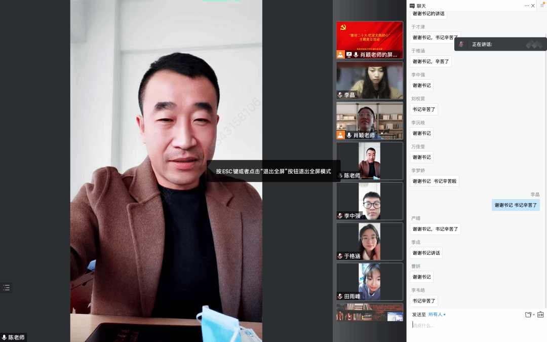 副书记陈树森逐个询问在外实习学生党员的生活和工作情况,提醒同学们注意自身安全,在配合做好疫情防控的同时,加强理论和业务学习,同时要充分发挥党员的先锋模范作用,主动了解其他实习学生工作中、生活中存在的实际困难,及时向学院反馈,与学院一起为同学们排忧解难。