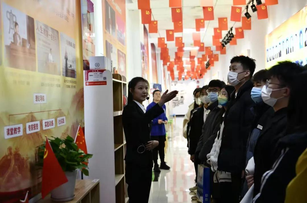 在初心宣讲团成员的带领下,学员们参观了VR实验室、学员教室、实训室及青马活动图片展,对杏林青马工程的发展跃迁过程、“14235”的培养模式、“144X”方案、“十个一”自我提升计划及“金木水火土”计划进行了了解。
