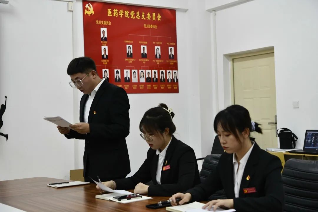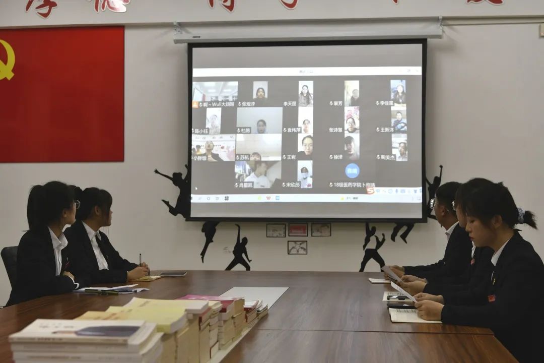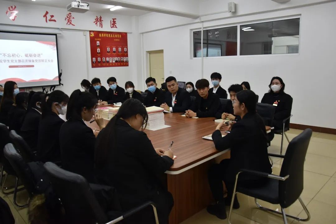 2021年12月3日18:00,在第四教学楼4308会议室召开了医药学院2021年下半年预备党员转正大会。本次转正同学中有16人为校外实习同学,考虑疫情因素,因此采用线上线下相结合方式进行,全体学生党员参加。