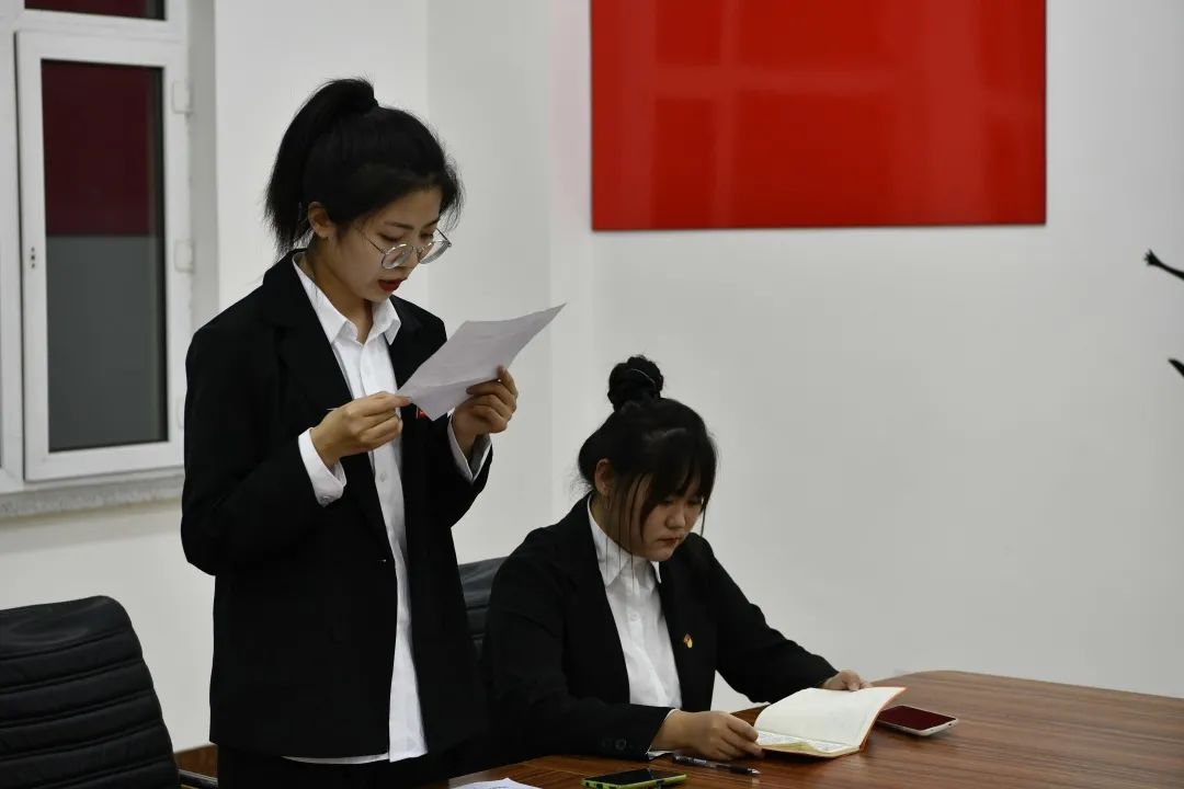 会议首先由学生党支部书记肖颖老师介绍此次大会流程、参会人员情况及预备党员个人情况。其次张金龙、靖倩、李天丽、李佳宣等预备党员,依次宣读《转正申请书》,汇报了自己在预备期间的现实表现,表达了自己迫切希望转为正式党员的强烈愿望。