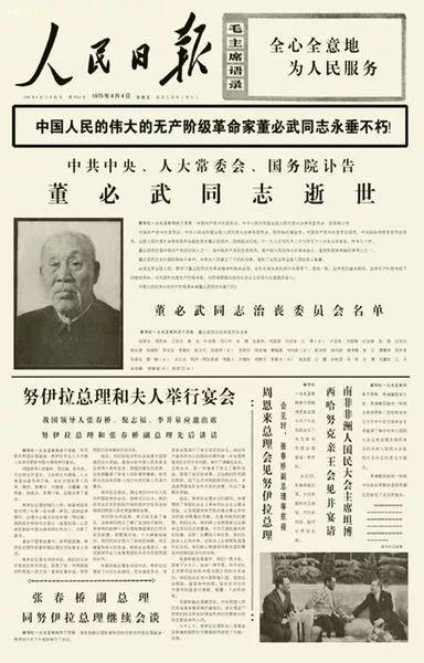 1975年4月2日 董必武在北京逝世,终年90岁。董必武同志是中国共产党的创始人之一,中华人民共和国的缔造者之一,杰出的无产阶级革命家、马克思主义的政治家和法学家,是我们党第一代领导集体的成员和国家的重要领导人。