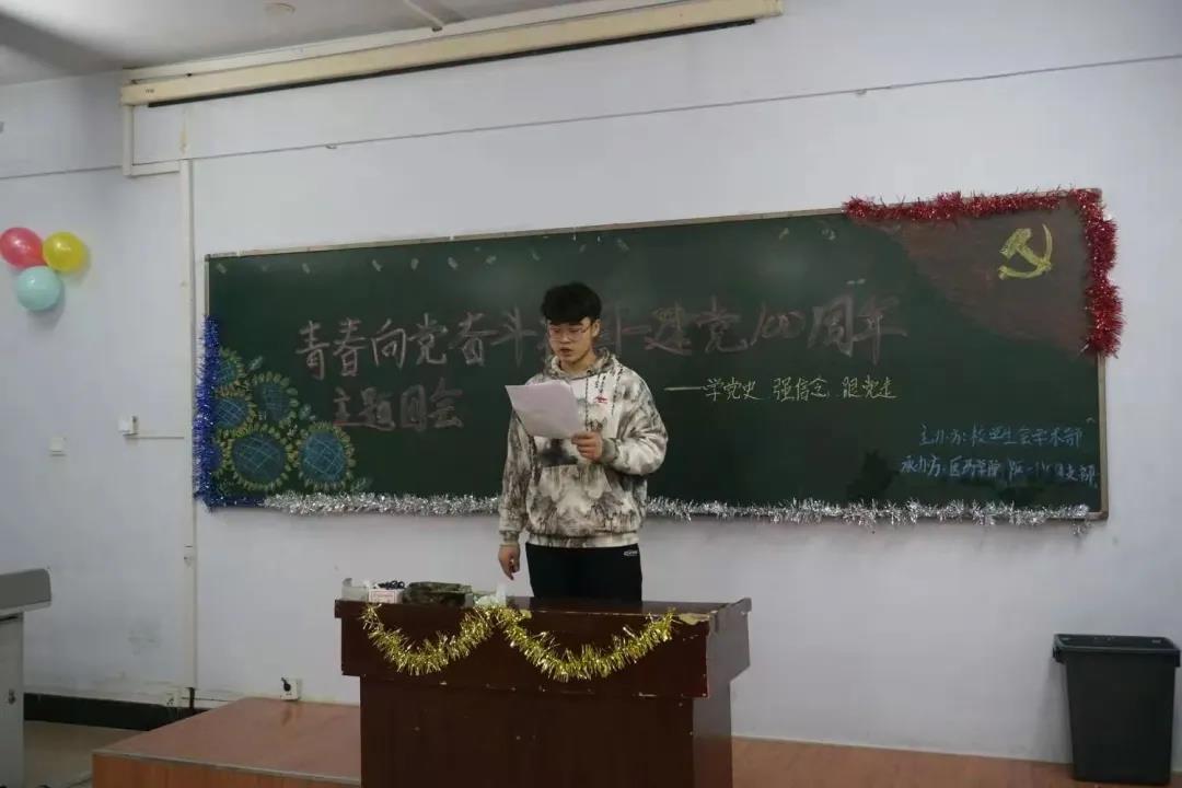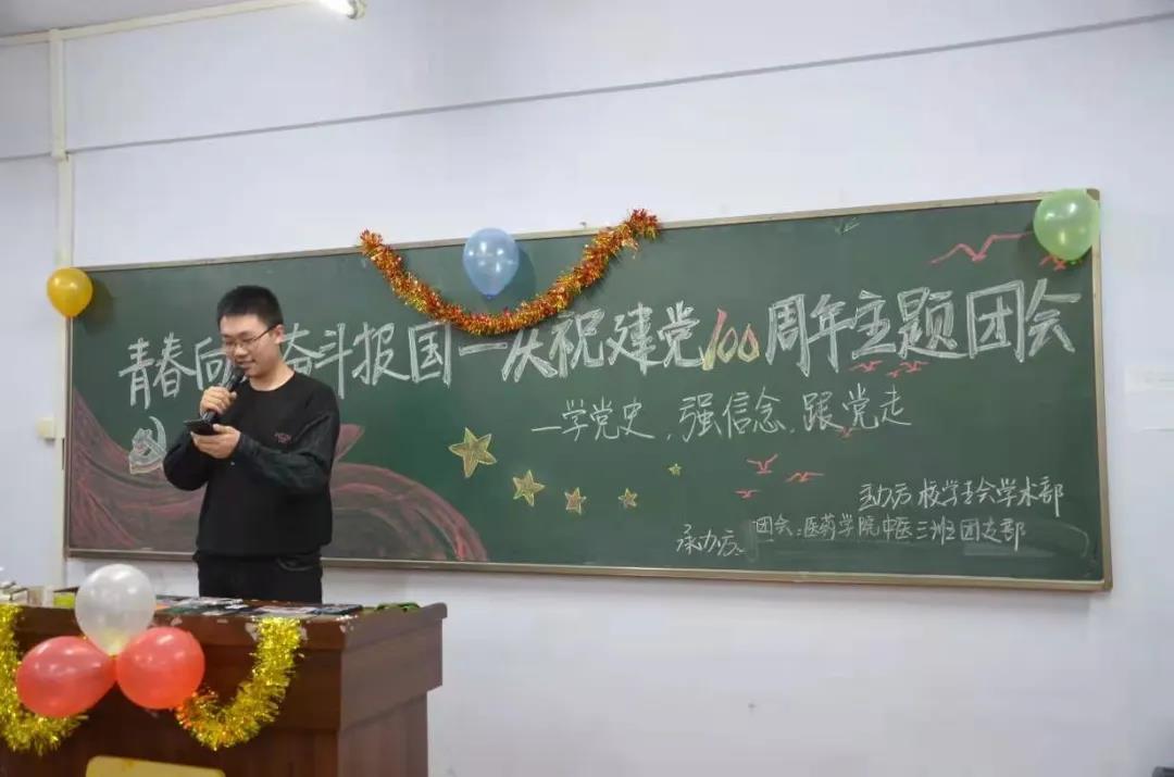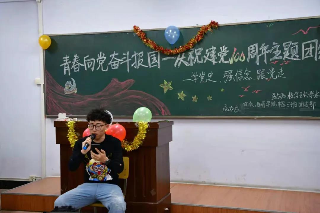 今年是党的百年华诞,为引导医药学子了解党的光辉历史、感悟党的初心使命、领会党的创新理论、体认党的精神谱系、传承党的红色基因,2021年3月28日下午六点我院在第二教学楼六楼,我院20级各班团支部开展“学党史、强信念、跟党走”主题团会。
