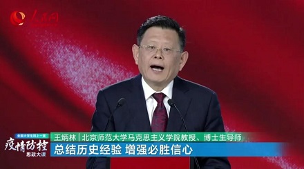 北京师范大学马克思主义学院,教授、博士生导师王炳林,主讲题目“总结历史经验,增强必胜信心”