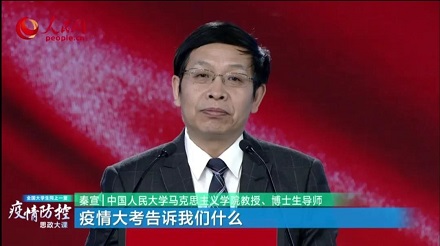 中国人民大学马克思主义学院,教授、博士生导师秦宣,主讲题目“疫情大考告诉我们什么?”