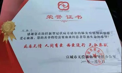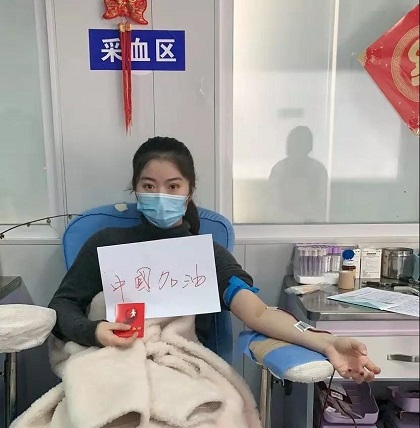 2月2日,她在志愿者群中看到广德市中心血站发布的用血告急倡议书后,克服自己的内心恐惧,号召了其他实习生俩人,一起走进了爱心献血屋,参加无偿献血志愿者活动中,献血200毫升,那是她人生中的第一次献血。