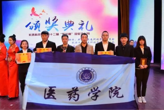 2016年4月13日星期三,晚上6点30分。长春科技学院第12届“寝室文化节”颁奖典礼在東鳌国际会议中心举行,伴随着军乐团的《龙的传人》和《威廉退尔序曲》拉开了序幕。本次颁奖晚会共设置“星级寝室”、 “学院风”、 “微电影”、 “变废为宝”4个奖项,邀请了学生处处长朱振江,刘晓芳老师,医药学院陈树森书记和各个院系书记。在舞蹈采薇的徐徐落幕后,主持人宣布获得星级寝室奖和学院风的学院。我院5舍531寝室荣获“星级寝室”奖,我院“学院风”荣获2等奖。在原野之声合唱团温暖的歌声中,宣布我院荣获微电影三等奖,在大学生艺术团的浏阳河古筝声中,宣布我院总成绩在其他学院之上荣获第一名的好成绩。