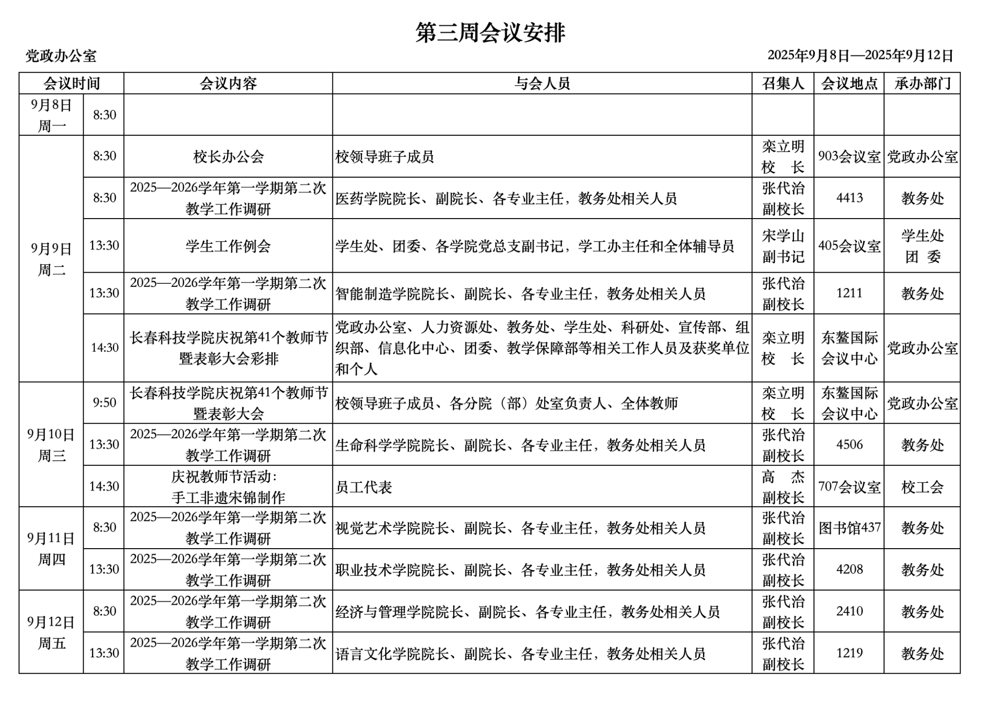 2025-2026学年第一学期第三周周表